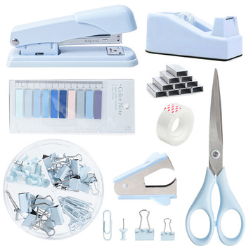 Sıcak satış sınır ötesi masaüstü ofis kırtasiye seti mavi zımba mezura makas tırnak içerir